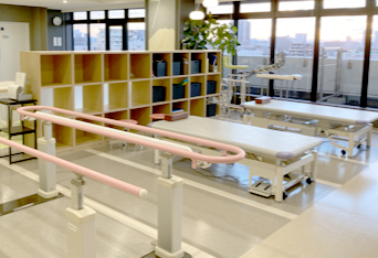 愛する町でその人らしくという理念の下、医師、看護師等と理学療法士(PT)、作業療法士(OT)、言語聴覚士(ST)が連携を取りながら、疾病や外傷によって障害を持った方の機能回復を促すとともに、住み慣れた場所で生活を続けていけるように支援を行っています。