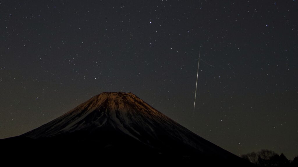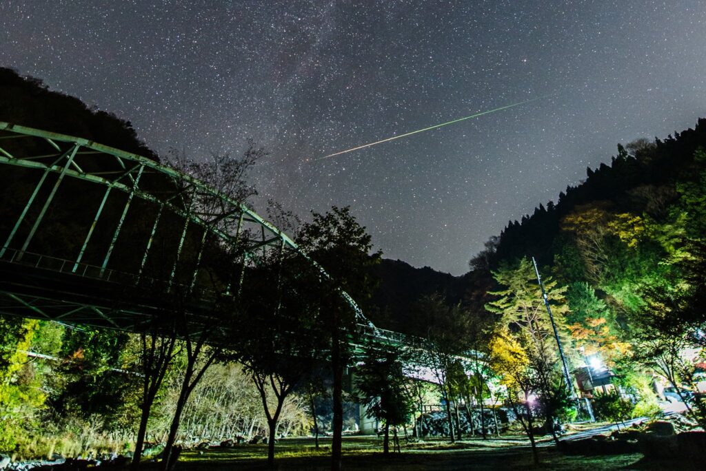 また、2枚目の写真のように、流星群とは関係のない明るい流星が偶然写り込むこともあります。流星は一期一会です。時間のあるときに夜空を見上げてみてはいかがでしょうか。