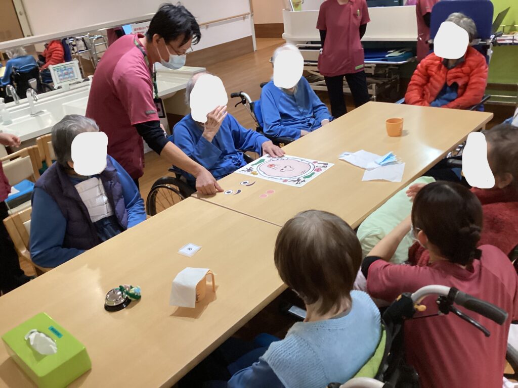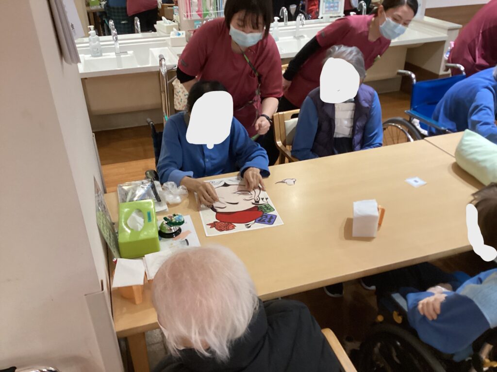 新年ということで、1月は”福笑い”を行いました(*^-^*)