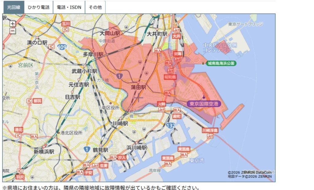 故障発生のお知らせ(大田区エリア/蒲田ビルの一部)